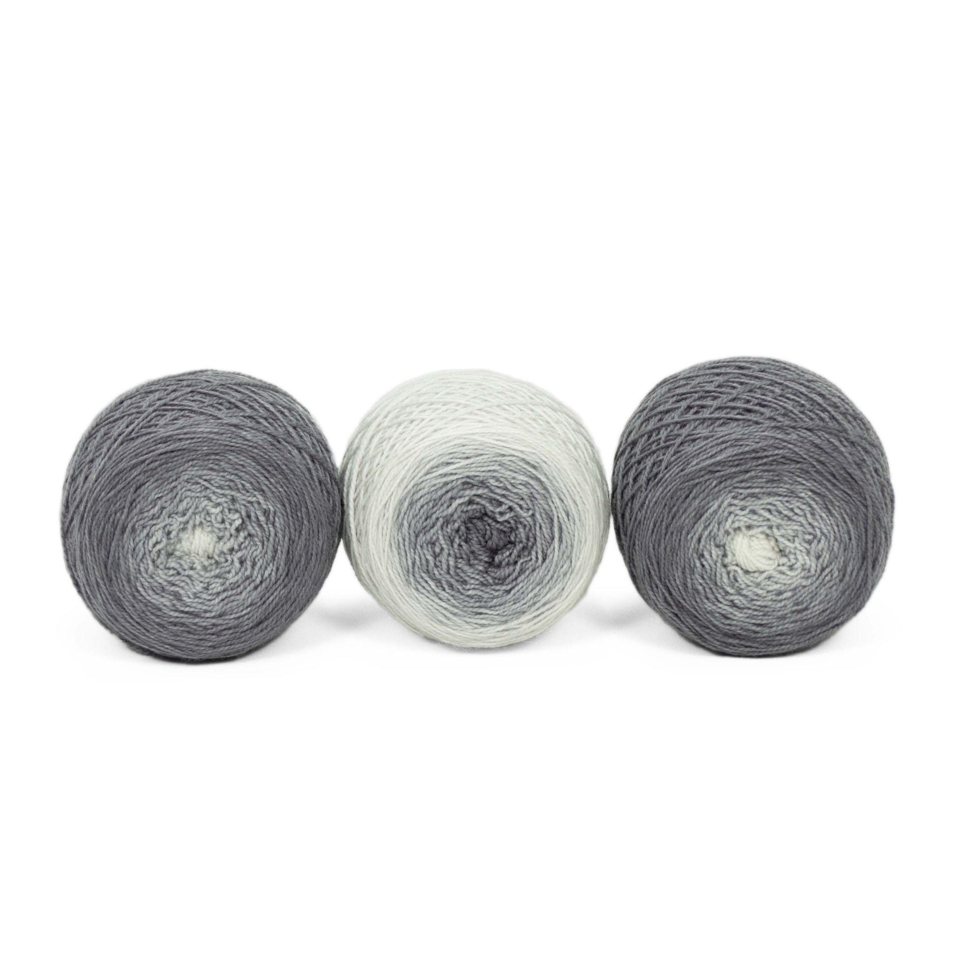 Photos may show the same colorway wound from different ends to display the spectrum of the gradient.