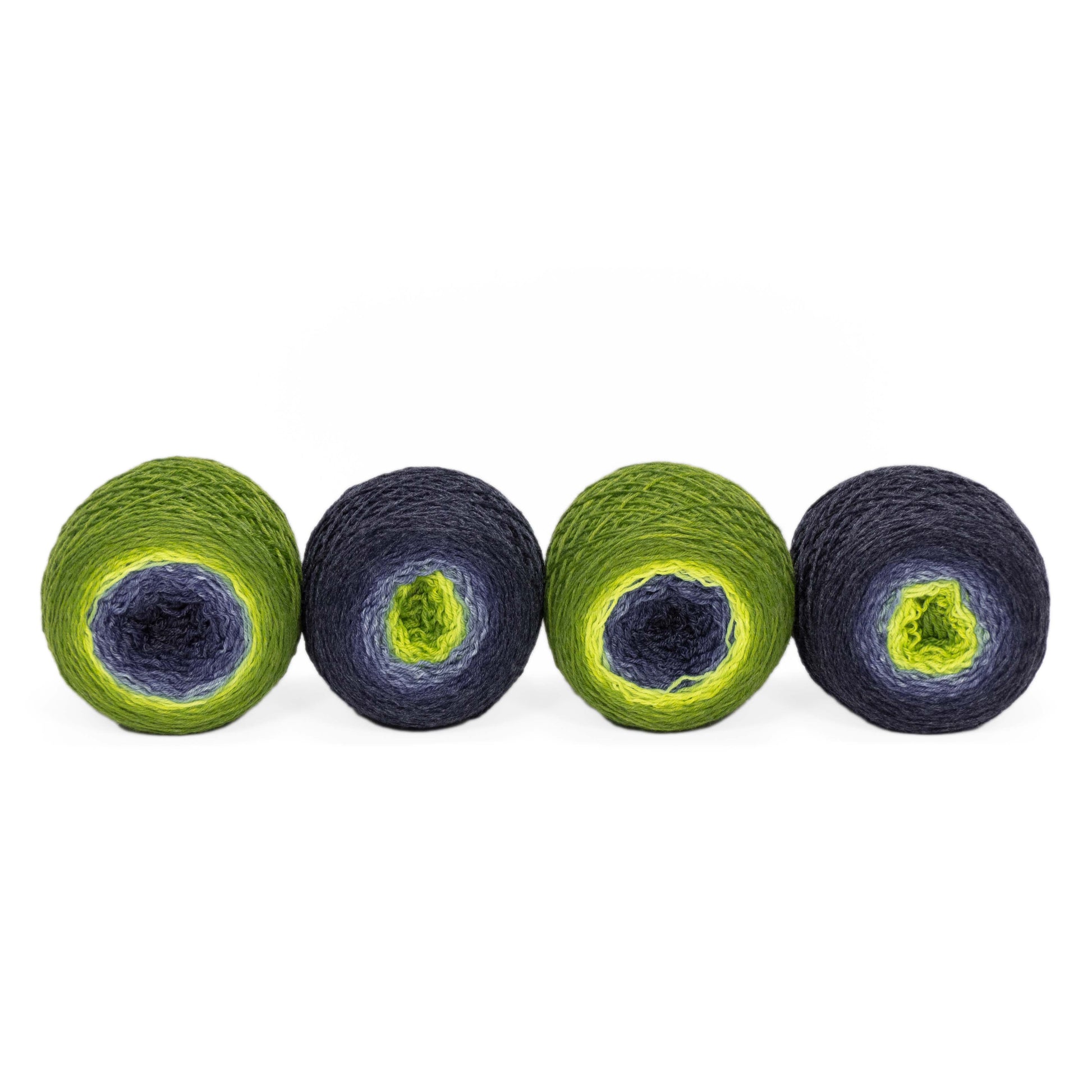 Photos may show the same colorway wound from different ends to display the spectrum of the gradient.